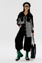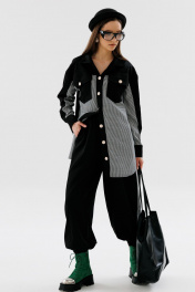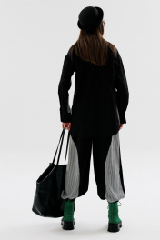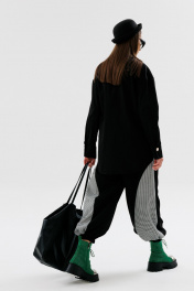Брюки свободного покроя из текстиля с заужением NikVa 727-1 чёрный+чёрно-белая_гусиная_лапка