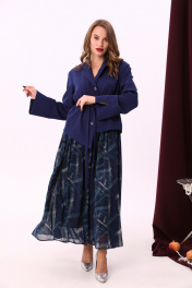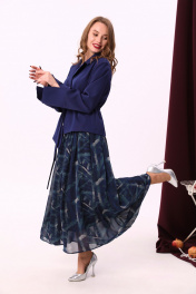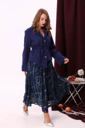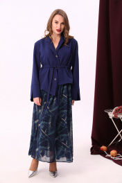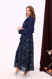Комбинированное платье из двух тканей с фигурным низом и воротником NikVa 900-2 сапфир