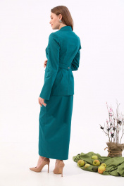 Трёхпредметный джинсовый костюм с юбкой и костюмными манжетами NikVa 930-2 изумруд