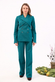 Бирюзовый джинсовый костюм с брюками и жакетом NikVa 933-2 изумруд