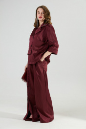 Брюки свободного кроя, верхний срез представлен широкой резинкой, с карманами. По центру правой брючины расположена планка с функционирующими петлями и пуговицами.