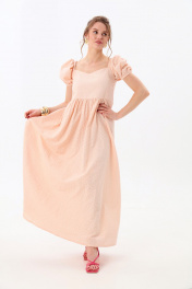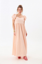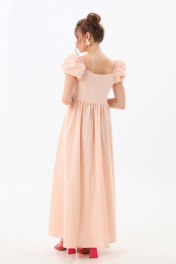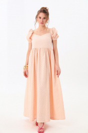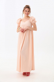Платье свободного кроя с завышенной талией и отрезным верхом. На платье рукава-фонарики со сборкой по окату. Рукава вшиты в бретель, бретель собирается на резинку. Юбка объемная со сборкой. Юбка платья на подкладке.