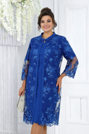 Нарядный кружевной комплект из кардигана и платья в синем цвете Ninele 6040 василек