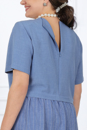 7454 Платье женское Это элегантное летнее платье А-силуэта создано для женщин, которые ценят комфорт и стиль. Платье выполнено из ткани, по фактуре напоминающей натуральный лен, что придает ему естественность и легкость. Полосатая ткань на юбке вытягивает фигуру, создавая стройный и пропорциональный силуэт. Платье женское А-силуэта, отрезное чуть ниже талии, расширено к низу, выполнено из плательной ткани, длиной по среднему шву спинки 132см. Платье без подкладки. Перед платья с нагрудными вытачками и накладным карманом. В нижней части рельефа обработан разрез. Горловина переда обработана обтачкой. По юбке легкая сборка в верхней части. Спинка со средним швом, в верхней части которого расположена застежка на потайную тесьму-"молнию". Рукава втачные, одношовные. Длина рукавов 26 см.
