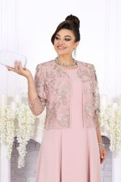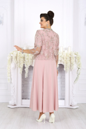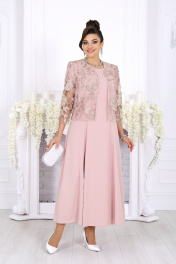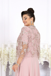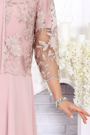 7489 Комплект женский Роскошный образ, созданный для особых случаев! Этот костюм идеально подойдет для торжеств, вечеринок и мероприятий, где хочется блистать. Лёгкое шифоновое струящееся платье в пол подчеркивает женственность и визуально удлиняет силуэт, а нарядный кружевной жакет добавляет изысканности. Дополните костюм элегантными аксессуарами – и ваш стильный выход гарантирован! Комплект женский 2-х предметный, состоящий из жакета и платья. Жакет полуприлегающего силуэта, укороченный, выполнен из гипюра. Модель без подкладки. Перед с нагрудными вытачками, направленными от пройм. Срезы борта и горловины окантованы косой бейкой из плательного стрейч-шифона. Рукав втачной, длиной ¾. Низ переда, спинки и рукавов оформлен фестонами. Длина жакета – 52 см; длина рукава – 48 см. Платье полуприлегающего силуэта, расклешенное к низу. Модель двухслойная, оба слоя выполнены из плательного стрейч-шифона и скреплены по горловине и проймам. Перед с рельефными швами, проходящими через центр груди, идущими от пройм до низа. Спинка с рельефными швами, идущими от пройм до низа; в среднем шве обработана застежка на потайную тесьму-«молнию» (50 см). Горловина округлой формы, углубленная спереди. Рукав втачной, короткий. Платье с плечевыми накладками. Длина платья – 131 см, длина рукава – 25 см.