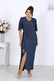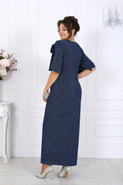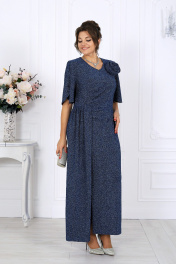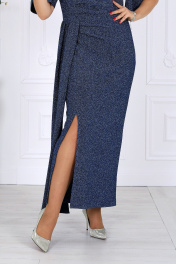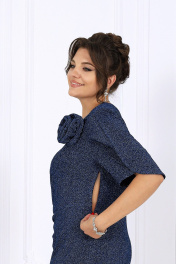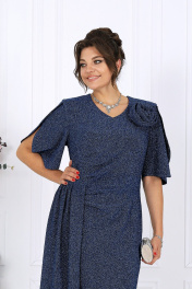7509 Платье, которое само по себе становится событием. Роскошное вечернее платье из мерцающего трикотажа с нитью люрекс создано, чтобы подчеркнуть женственность и элегантность в каждом движении. Оно притягивает взгляд, играя бликами при любом освещении — будь то мягкий свет ресторанных ламп или огни праздничного зала. Это тот редкий случай, когда комфорт и эффектность соединяются в идеальном балансе: платье выглядит торжественно, но остаётся удобным даже во время самого долгого вечера. Главный акцент — отлетная деталь из того же мерцающего полотна. Она добавляет образу утончённую театральность. Съемный цвет выполнен в тон платья, его можно расположить на плече, в зоне декольте или у талии — в зависимости от настроения и события. Платье идеально садится по фигуре, подчёркивая достоинства женщин с роскошными формами. Эта модель — воплощение торжественности и женственности. Она будет уместна на свадьбе, юбилее, выпускном, театральной премьере или корпоративном вечере. Стоит лишь надеть туфли на каблуке и добавить каплю любимого парфюма — и вы уже героиня праздника, к которой прикованы все взгляды. Платье женское полуприлегающего силуэта, выполнено из трикотажного полотна с фактурной лицевой стороной «люрекс». Модель на трикотажной подкладке, с плечевыми накладками. В левом боковом шве обработана застежка на потайную тесьму-«молнию» (35 см). Перед платья с горизонтальным подрезом по линии талии и отлетной деталью в шве подреза. В правой части переда обработан рельеф с разрезом в нижней части. Вдоль рельефного шва заложены односторонние складки, направленные к центру переда. Спинка с талиевыми вытачками. Горловина спинки округлая, по переду V-образная, углубленная. Рукав короткий, втачной, формы «крылышко на запах», со скругленными краями. Платье дополнено съемным «цветком» из основного полотна. Длина платья - 136 см; длина рукава - 31 см.