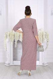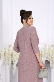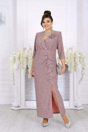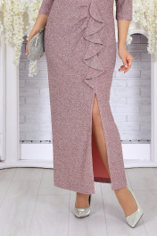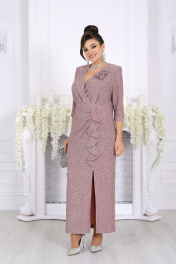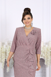 7515 Платье женское Ослепительное платье из мерцающего люрекса создано для тех, кто хочет выглядеть роскошно и уверенно на любом торжестве. Эта модель моментально притягивает взгляд — благородный блеск ткани, элегантный V-образный вырез, женственный запах и изящные складки создают по-настоящему праздничный образ, который подчёркивает фигуру и делает её зрительно стройнее. Платье продумано до мелочей, чтобы каждая женщина — в том числе в больших размерах — чувствовала себя уверенной, женственной и роскошной. Мерцающий люрекс под светом ламп и софитов смотрится особенно эффектно — идеально для свадьбы, юбилея, корпоратива, новогодней вечеринки или любого важного события, где нужно блистать. Съёмный декоративный цветок позволяет легко менять настроение образа: хочешь — создаёшь более торжественный акцент, хочешь — оставляешь чистую элегантную линию. Платье женское полуприлегающего силуэта, выполнено из трикотажного полотна с фактурной лицевой стороной «люрекс». Модель на трикотажной подкладке, с плечевыми накладками и застежкой в левом боковом шве на потайную тесьму-«молнию» (35 см). Перед отрезной по линии талии. Верхняя часть переда состоит из двух деталей, скрепленных на запах; вдоль горизонтального подреза заложены односторонние складки. На нижней части переда обработан рельефный шов с двойным воланом в верхней части и разрезом по низу; от шва к центру направлены односторонние складки. На спинке обработаны талиевые вытачки. Рукав трехчетвертной. Платье дополнено съемным «цветком» из основного полотна. Длина платья – 134 см; длина рукава – 42 см.