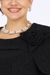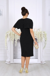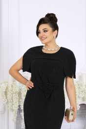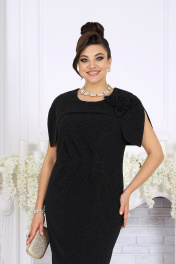 7524 Платье женское Элегантное женское платье создано для особых случаев, когда хочется выглядеть безупречно и чувствовать себя уверенно. Модель полуприлегающего силуэта мягко подчёркивает фигуру, визуально вытягивает силуэт и комфортно садится на фигуру, в том числе в больших размерах. Платье выполнено из эффектного трикотажного полотна с фактурной лицевой стороной «люрекс», которое красиво переливается при свете и придаёт образу праздничное настроение. Трикотажная подкладка обеспечивает комфорт при носке и идеальную посадку. Особый акцент модели — эффектная пелерина с фигурным низом и разрезами от плечевых швов. Она создаёт ощущение многослойности, скрывает зону плеч и рук и добавляет образу торжественности. Съёмный декоративный цветок позволяет менять настроение платья — от сдержанной классики до выразительного праздничного образа. Это платье станет идеальным выбором для свадьбы, торжественного вечера, юбилея, корпоратива или праздничного выхода, подчёркивая статус и вкус своей обладательницы. Платье женское полуприлегающего силуэта, выполнено из трикотажного полотна с фактурной лицевой стороной «люрекс». Модель на трикотажной подкладке, без воротника и рукавов, без плечевых накладок. Перед отрезной по линии талии; на верхней части обработан рельеф, направленный от левой проймы, на нижней части, на продолжении линии рельефного шва, обработана талиевая вытачка. По обе стороны от подреза талии переда застрочены косые односторонние складки. Спинка с талиевыми вытачками и средним швом, в верхней части которого обработана застежка на потайную тесьму-«молнию» (50см), в нижней – разрез. Горловина круглой формы, спереди углубленная. В шов обтачивания горловины входит пелерина с фигурным низом и разрезами от плечевых швов; пелерина разъемная по середине спинки. Платье дополнено съемным «цветком» из основного полотна. Длина платья - 106 см.