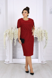 7524 Платье женское Элегантное женское платье создано для особых случаев, когда хочется выглядеть безупречно и чувствовать себя уверенно. Модель полуприлегающего силуэта мягко подчёркивает фигуру, визуально вытягивает силуэт и комфортно садится на фигуру, в том числе в больших размерах. Платье выполнено из эффектного трикотажного полотна с фактурной лицевой стороной «люрекс», которое красиво переливается при свете и придаёт образу праздничное настроение. Трикотажная подкладка обеспечивает комфорт при носке и идеальную посадку. Особый акцент модели — эффектная пелерина с фигурным низом и разрезами от плечевых швов. Она создаёт ощущение многослойности, скрывает зону плеч и рук и добавляет образу торжественности. Съёмный декоративный цветок позволяет менять настроение платья — от сдержанной классики до выразительного праздничного образа. Это платье станет идеальным выбором для свадьбы, торжественного вечера, юбилея, корпоратива или праздничного выхода, подчёркивая статус и вкус своей обладательницы. Платье женское полуприлегающего силуэта, выполнено из трикотажного полотна с фактурной лицевой стороной «люрекс». Модель на трикотажной подкладке, без воротника и рукавов, без плечевых накладок. Перед отрезной по линии талии; на верхней части обработан рельеф, направленный от левой проймы, на нижней части, на продолжении линии рельефного шва, обработана талиевая вытачка. По обе стороны от подреза талии переда застрочены косые односторонние складки. Спинка с талиевыми вытачками и средним швом, в верхней части которого обработана застежка на потайную тесьму-«молнию» (50см), в нижней – разрез. Горловина круглой формы, спереди углубленная. В шов обтачивания горловины входит пелерина с фигурным низом и разрезами от плечевых швов; пелерина разъемная по середине спинки. Платье дополнено съемным «цветком» из основного полотна. Длина платья - 106 см.