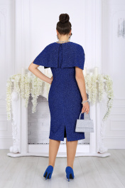 7524 Платье женское Элегантное женское платье создано для особых случаев, когда хочется выглядеть безупречно и чувствовать себя уверенно. Модель полуприлегающего силуэта мягко подчёркивает фигуру, визуально вытягивает силуэт и комфортно садится на фигуру, в том числе в больших размерах. Платье выполнено из эффектного трикотажного полотна с фактурной лицевой стороной «люрекс», которое красиво переливается при свете и придаёт образу праздничное настроение. Трикотажная подкладка обеспечивает комфорт при носке и идеальную посадку. Особый акцент модели — эффектная пелерина с фигурным низом и разрезами от плечевых швов. Она создаёт ощущение многослойности, скрывает зону плеч и рук и добавляет образу торжественности. Съёмный декоративный цветок позволяет менять настроение платья — от сдержанной классики до выразительного праздничного образа. Это платье станет идеальным выбором для свадьбы, торжественного вечера, юбилея, корпоратива или праздничного выхода, подчёркивая статус и вкус своей обладательницы. Платье женское полуприлегающего силуэта, выполнено из трикотажного полотна с фактурной лицевой стороной «люрекс». Модель на трикотажной подкладке, без воротника и рукавов, без плечевых накладок. Перед отрезной по линии талии; на верхней части обработан рельеф, направленный от левой проймы, на нижней части, на продолжении линии рельефного шва, обработана талиевая вытачка. По обе стороны от подреза талии переда застрочены косые односторонние складки. Спинка с талиевыми вытачками и средним швом, в верхней части которого обработана застежка на потайную тесьму-«молнию» (50см), в нижней – разрез. Горловина круглой формы, спереди углубленная. В шов обтачивания горловины входит пелерина с фигурным низом и разрезами от плечевых швов; пелерина разъемная по середине спинки. Платье дополнено съемным «цветком» из основного полотна. Длина платья - 106 см.