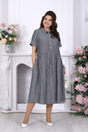 Лаконичное и стильное платье в духе сафари — идеальный баланс комфорта и элегантности на каждый день. Модель прямого силуэта с фигурной линией талии мягко садится по фигуре, не сковывая движения. Лиф выполнен из однотонной ткани с фактурой под лён, а воротник, планка, манжеты и низ — из контрастного материала в деликатную полоску, что добавляет образу глубину и характер. Отложной воротник со стойкой и аккуратная застёжка на пуговицы формируют сдержанный, деловой акцент. Короткий рукав с манжетой и отворотом, боковые карманы и лёгкая сборка по линии талии делают модель особенно удобной для повседневной носки. Натуральная ткань и хлопковая подкладка обеспечивают комфорт в течение всего дня. Платье легко адаптируется под разные ситуации: на работу, в офис, для деловых встреч или повседневных образов — всегда выглядит уместно и стильно. Белорусское качество, продуманный крой и универсальный дизайн делают эту модель отличным выбором для женщин с формами, ценящих комфорт и уверенность в каждом движении. Платье женское прямого силуэта, отрезное по линии талии. Лиф платья и рукава из ткани однотон, по структуре, напоминающей лён. Воротник, стойка, планки, манжеты рукава и низ платья из ткани компаньон в полоску, по структуре, напоминающей лён. Линия талии фигурная и со сборкой по верхнему срезу юбки. По центру полочки оформлена застежка с притачными планками до линии талии на 6 петель и 6 пуговиц. Рукав в платье втачной короткий, низ обработан притачной манжетой с «отворотом» и манжета декорирована пуговицей. Перед с нагрудными вытачками, направленными от пройм. Горловина оформлена отложным воротником со стойкой. В боковых швах платья, обработаны карманы. Низ платья на х/б подкладке. Длина платья –114 см (50-58 р-р); длина рукава-23,5 см.