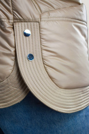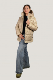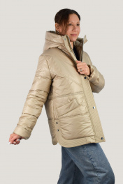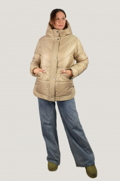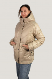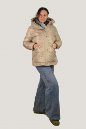 Куртка женская, утеплённая сос тёжкой выполненной на весь пакет изделия. Длинна до середины бедра. Куртка прямого силуэта с втачными рукавами, капюшон втачной. Перед отрезной по линии талии, застёжка центральная на молнии, ветрозащитная планка. Карманы с листочкой с настрочными концами. По переду и спинке отрезная декоративная планка, застёгивающаяся на 2 кнопки с каждой стороны. Спинка без среднего шва. Рукава втачные, длинные, одношовные с отворачивающейся манжетой.