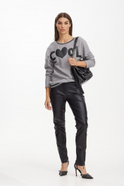 Стильный мягкий свитшот из вязаного трикотажного полотна, со спущенным плечом и дизайнерской вышивкой. Горловина и низ свитшота декорированы довязом.
