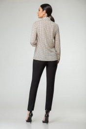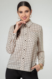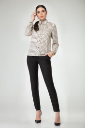 Блузка выполнена из шифоновой ткани. Воротник рубашечного типа. Спереди блузка застегивается на пуговицы. Слева на груди выполнен накладной карман. Рукав на манжете, застегивается на две пуговицы. Длина по спинке – 62 см, длина рукава – 59 см.