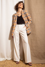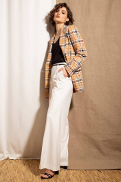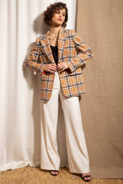 Жакет деловой в клетку из текстиля на пуговицах Nova Line 10381 бежевый
