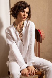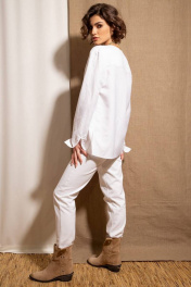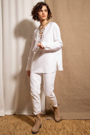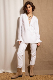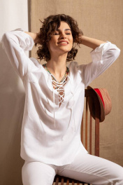 Блуза на каждый день из натуральной ткани с шнуровкой Nova Line 20717 молочный