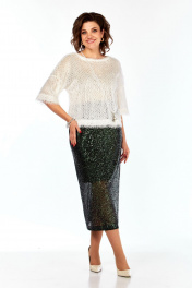 Блуза, юбка Ольга Стиль Л-413 молочный-зеленый