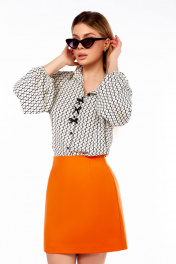 Юбка на подкладке, слегка расширенного силуэта, на обтачке и с потайной застежкой по спинке. Длина 42см