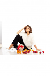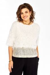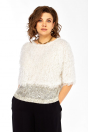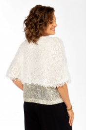Блузка нарядная прямого силуэта, из интересной ткани с бахромой и отделкой из паеток. Вырез горловины округлой формы, со спущеныным рукавом длиной 3/4 Длина блузки 55см, длина рукава от горловины 41,5см.
