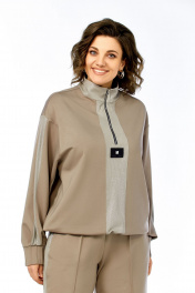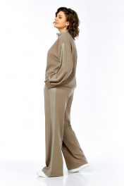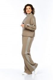 Костюм женский спорт-шик. Джемпер прямого силуэта, со спущенным рукавом. Воротник-стойка из отделочной ткани, планка по центру, в которой вставлена молния, декаротивная нашивка. Рукав с планками из отделочной ткани и декоративные защипы на манжетах. По низу кулиска с фиксаторами. Брюки прямые, по переду застрочены стрелки, по внешней стороне отделочные детали. Карманы в боковых швах, пояс на резинке. Длина джемпера 60см с воротником, длина рукава от плеча 75см. Длина брюк 109см 48 50 52 54 56 58 джемпер ОГ 114 116 120 122 124 128 длина дж. 58 58 60 60 60 62 обхв. плеча 46 48 50 52 54 56 ширина манжеты 10 10 10,5 10,5 10,5 11 длина рукава от пл. 73 73 75 75 75 77 брюки пояс(без растяжения резинки) 74 76 80 84 88 90 ОБ 109 113 117 121 125 130 дл.внутреннего шва 83 83 84 84 84 83 длина брюк 107 107 109 109 109 110 ширина внизу 28,5 29 29,5 30 31 32