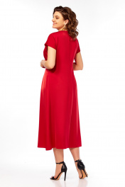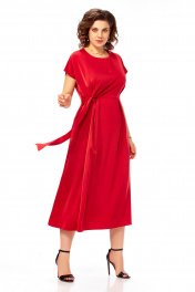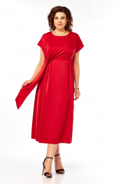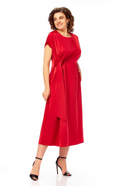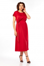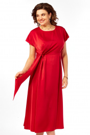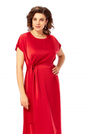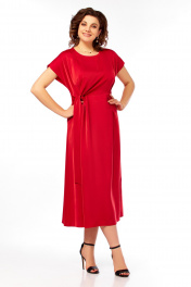 Платье женское, полуприлегающего силуэта со спущенным рукавом. Отрезное по линии талии, по переду заложены складки. С правой стороны в области талии вставлен пояс из основной ткани. Спинка со средним швом и потайной молнией.