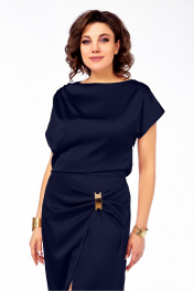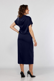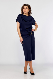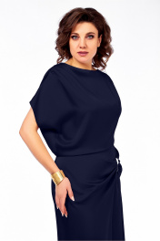 Шикарное нарядное платье, полуприлегающего силуэта из струящейся ткани с цельнокроеным рукавом, коротким, ассиметричного силуэта. Платье отрезное по талии, с молнией потайной в боковом шве. По плечевому шву по переду и спинке заложены складки. Нижняя часть с разрезом, декоративной не сьемной пряжкой. Талия присобна на резинку Длина платья 130см