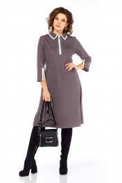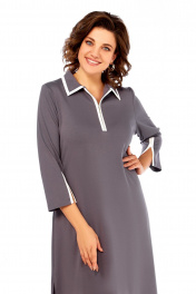 Интересное плать из премиального трикотажного полотна, с воротником поло и застежкой-молнией по центру. Контрастная отделка, А-силуэт, разрезы в боковых швах. Рукав втачной с контрастной отделкой-планкой по низу. Длина платья 106см, длина рукава 51см.