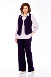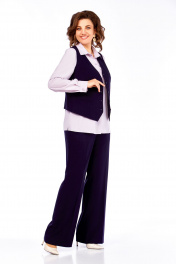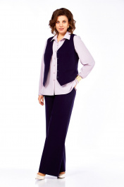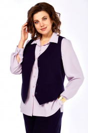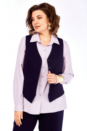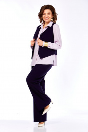 Блуза, брюки, жилет Ольга Стиль С-979 темно-синий_клетка