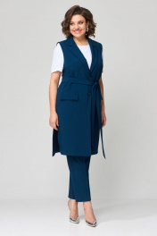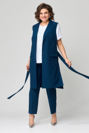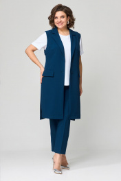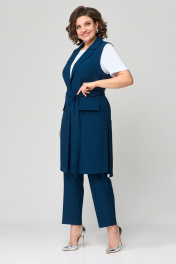 Комплект из жилета, блузы и зауженных брюк Орхидея 1403 морская_волна-белый