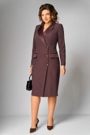 Платье женское, полуприлегающего силуэта, зауженное к низу, с двубортной застежкой (правая часть имеет слегка наклонную линию) на 3 отделочные пуговицы. На спинке средний шов, заканчивающийся шлицей и талиевые вытачки. По переду отрезной бочок, заканчивающийся в области бедер и нагрудная вытачка, в горизонтальном подрезе, в котором выполнен прорезной карман с двумя рамками и клапаном. Горловина оформлена воротником пиджачного типа. Рукав втачной, одношовный, длинный. Воротник, лацкан, клапаны и рамки кармана из атласной ткани. Ширина изделия на уровне глубины: 46р – 49см, 48р – 51см, 50р – 53см, 52р – 55см, 54р – 57см, 56р – 59см; Ширина по линии талии: 46р – 42см, 48р – 44см, 50р – 46см, 52р – 48см, 54р – 50см, 56р – 52см; Ширина по линии бедер: 46р – 51см, 48р – 53см, 50р – 55см, 52р – 57см, 54р – 59см, 56р – 61см; Длина по среднему шву спинки: 46-50р – 107см, 52-56р – 108см; Ширина спинки: 46-50р – 39см, 52-56р – 41см; Ширина плеча: 46-50р – 12,5см, 52-56р – 13,5см; Ширина рукава под проймой: 46р – 17,5см, 48р – 18,5см, 50р – 19,5см, 52р – 19,5см, 54р – 20,5см, 56р – 21,5см; Длина рукава: 46-56р – 61см.