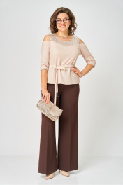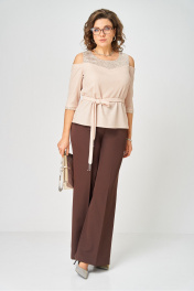 Блуза, брюки Орхидея 1635 бежевый, коричневый