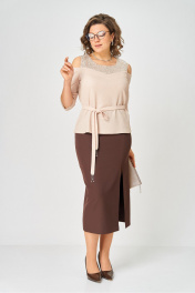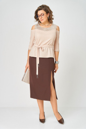 Блуза, юбка Орхидея 1637 бежевый, коричневый