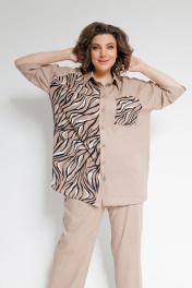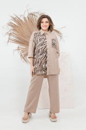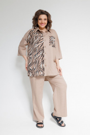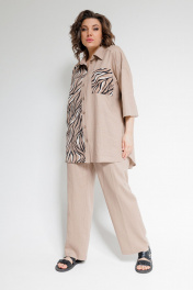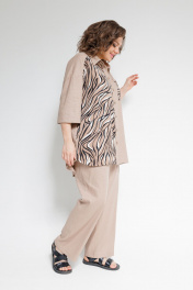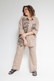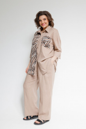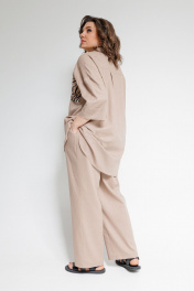Льняной костюм Блуза и Брюки на каждый день дляOffice OVERYOU М101 бежевый