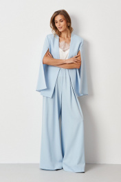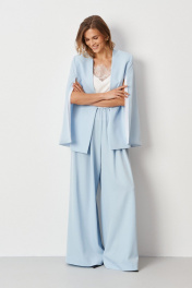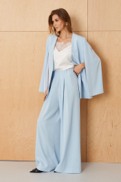 Эти женские брюки выполнены из струящейся ткани, что делает их особенно удобными и подходящими для создания как повседневных, так и торжественных образов. Модель обладает свободным кроем, обеспечивающим комфорт и свободу движений, что особенно важно при длительном ношении. Верхний срез брюк обработан на внутренней декоративной резинке, что позволяет легко регулировать объем по талии и обеспечивает надежную, приятную посадку. Передняя часть украшена двумя аккуратными складками, придающими образу легкость и изящность, а задняя часть украшена декоративной строчкой, добавляющей стильный акцент и подчеркнутую деталь. Брюки выполнены в нежном голубом оттенке, брюки легко сочетаются с различными топами и обувью, создавая свежие, легкие и утонченные образы для любого случая. 44 Брюки: Высота посадки - 34см, Длина брюк - 114см, Ширина брючин сверху - 41см, Ширина по бедрам - 58см, Ширина по низу - 41см, Ширина по талии - 43.5см; 46 Брюки: Высота посадки - 34.5см, Длина брюк - 114см, Ширина брючин сверху - 42см, Ширина по бедрам - 60см, Ширина по низу - 41.5см, Ширина по талии - 45.5см; 48 Брюки: Высота посадки - 35см, Длина брюк - 114см, Ширина брючин сверху - 43см, Ширина по бедрам - 62см, Ширина по низу - 42.5см, Ширина по талии - 48см; 50 Брюки: Высота посадки - 35.5см, Длина брюк - 114см, Ширина брючин сверху - 44см, Ширина по бедрам - 64см, Ширина по низу - 43см, Ширина по талии - 50см; 52 Брюки: Высота посадки - 36.5см, Длина брюк - 114см, Ширина брючин сверху - 45.5см, Ширина по бедрам - 66см, Ширина по низу - 44см, Ширина по талии - 52см; 54 Брюки: Высота посадки - 37см, Длина брюк - 114см, Ширина брючин сверху - 48см, Ширина по бедрам - 68см, Ширина по низу - 44.5см, Ширина по талии - 54см;