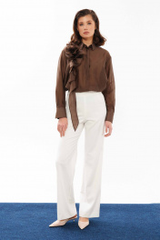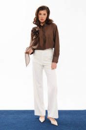 Молочные женские брюки прямые из смесового textиля Панда 10760 молочный