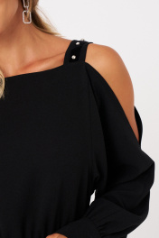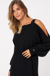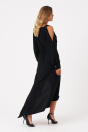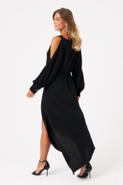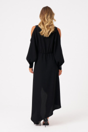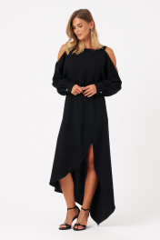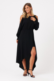 Женское макси-платье из струящейся ткани. Элегантное и удобное платье для повседневной носки. Модель отрезная по линии талии, с аккуратно вставленной резинкой, обеспечивающей идеальную посадку и комфорт в течение дня. Платье выполнено из легкой струящейся ткани черного оттенка и обладает изящной многослойной юбкой: основная юбка дополнена верхней и нижней, создающими объем и эффектный силуэт. Бретели с декоративной тесьмой и спущенная горловина придают образу женственность и нежность. Длинные рукава оформлены притачной манжетой на пуговицах, а низ рукава украшен мягким воланом со сборкой, что добавляет изысканности и динамики движению. Длина макси делает платье универсальным для различных случаев — от повседневных прогулок до вечерних выходов. 44 Платье: Длина изделия от высшей плечевой точки до низа - 150см, Длина нижней юбки по переду - 44см, Длина рукава - 62см, Длина до талии - 43.1см, Ширина по груди - 48см, Ширина по талии - 36см; 46 Платье: Длина изделия от высшей плечевой точки до низа - 150см, Длина нижней юбки по переду - 44см, Длина рукава - 62см, Длина до талии - 43.3см, Ширина по груди - 50см, Ширина по талии - 38см; 48 Платье: Длина изделия от высшей плечевой точки до низа - 150см, Длина нижней юбки по переду - 44см, Длина рукава - 62см, Длина до талии - 43.5см, Ширина по груди - 52см, Ширина по талии - 40см; 50 Платье: Длина изделия от высшей плечевой точки до низа - 150см, Длина нижней юбки по переду - 45см, Длина рукава - 62см, Длина до талии - 43.7см, Ширина по груди - 54см, Ширина по талии - 43см;