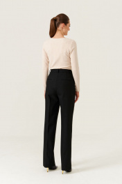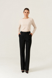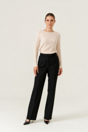 Брюки женские прямые из поливискозной ткани для повседневной носки. Верхний срез брюк обработан притачным поясом, застежка на один крючок, а также имеется застежка на тесьму-молнию в среднем шве брюк. В брюках имеются шлевки, что дает возможность носить их под ремень. Задняя часть брюк имеет две талиевые вытачки, а также два прорезных кармана в рамку с двумя обтачками. В брюках расположен в боковом шве карман с подкройным бочком. Отличный вариант брюк в классическом черном цвете, которые будут гармонично смотреться с любыми изделиями. В данных брюках вам будет очень комфортно и тепло за счет имеющегося начеса. Отличные базовые брюки в холодную погоду. 44 Брюки: Высота посадки - 29.5см, Длина брюк без пояса - 108см, Длина по внутреннему шву - 83см, Ширина брючин сверху - 64см, Обхват брюк по низу - 46см, Ширина по бедрам - 48.5см, Ширина по талии - 35.5см; 46 Брюки: Высота посадки - 30см, Длина брюк без пояса - 108см, Длина по внутреннему шву - 83см, Ширина брючин сверху - 66см, Обхват брюк по низу - 46.5см, Ширина по бедрам - 50.5см, Ширина по талии - 37.5см; 48 Брюки: Высота посадки - 30.5см, Длина брюк без пояса - 108.5см, Длина по внутреннему шву - 83см, Ширина брючин сверху - 68см, Обхват брюк по низу - 47см, Ширина по бедрам - 52.5см, Ширина по талии - 39.5см; 50 Брюки: Высота посадки - 31см, Длина брюк без пояса - 108.5см, Длина по внутреннему шву - 83см, Ширина брючин сверху - 70см, Обхват брюк по низу - 47.5см, Ширина по бедрам - 54.5см, Ширина по талии - 42см; 52 Брюки: Высота посадки - 31.5см, Длина брюк без пояса - 108.5см, Длина по внутреннему шву - 83см, Ширина брючин сверху - 72см, Обхват брюк по низу - 48см, Ширина по бедрам - 56.5см, Ширина по талии - 45см; 54 Брюки: Высота посадки - 32см, Длина брюк без пояса - 109см, Длина по внутреннему шву - 83см, Ширина брючин сверху - 74см, Обхват брюк по низу - 49см, Ширина по бедрам - 58.5см, Ширина по талии - 47см; 56 Брюки: Высота посадки - 32см, Длина брюк без пояса - 109см, Длина по внутреннему шву - 83см, Ширина брючин сверху - 76см, Обхват брюк по низу - 49.5см, Ширина по бедрам - 60.5см, Ширина по талии - 49см;