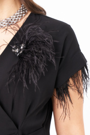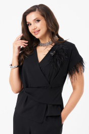 - ОписаниеЭто женская блузка из поливискозной струящейся ткани, подходящая для торжественных мероприятий. Блузка полуприлегающего силуэта. Блузка отрезная по линии талии. Верхняя часть блузки на запах с небольшими складками, а также имеется рельеф, идущий от линии плеча до отрезной линии по талии. Нижняя часть блузки имеет декоративную деталь, а также имитацию баски. Спинка со средним швом. Горловина V-образная. Линия плеча спущенна. Проймы обработаны обтачками и украшены перьями. Которые крепятся на тесьму с кнопками и есть возможность их остегнуть при необходимости либо для стирки блузки. За счёт съёмных перьев можно создавать различные образы как для торжественных случаев так и для других мероприятий. В данной блузке вы будете смотреться очень очаровательно ведь она отлично подчеркнет все ваши достоинства и скроет имеющиеся недостатки. 44 Блузка: Длина изделия - 56см, Ширина плеча - 24см, Ширина по груди - 51см, Ширина по низу - 50см, Ширина по талии - 43см, Ширина рукава - 18.4см; 46 Блузка: Длина изделия - 56см, Ширина плеча - 24.5см, Ширина по груди - 53см, Ширина по низу - 52см, Ширина по талии - 45см, Ширина рукава - 19.2см; 48 Блузка: Длина изделия - 56см, Ширина плеча - 25см, Ширина по груди - 55см, Ширина по низу - 54см, Ширина по талии - 47см, Ширина рукава - 21см; 50 Блузка: Длина изделия - 57см, Ширина плеча - 25.5см, Ширина по груди - 57см, Ширина по низу - 56см, Ширина по талии - 49см, Ширина рукава - 21.8см; 52 Блузка: Длина изделия - 57см, Ширина плеча - 26см, Ширина по груди - 59см, Ширина по низу - 58см, Ширина по талии - 51см, Ширина рукава - 22.6см;