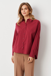 Блузка женская из хлопковой ткани. Элегантная хлопковая блуза порадует своей мягкостью и неприхотливым уходом. В состав также входит хлопок и полиэстер, благодаря которым она не стесняет в движении, выдерживает многократные стирки и глажку. Блузка офисная свободного кроя со спущенной линией плеча. Перед с воротником-стойкой и V-образным вырезом, подчеркнутым блестящими пуговицами на центральной застежке. Блузка летняя женская украшает аккуратный закругленный низ, разрезы в боковом шве и удлиненная спинка с пришивной кокеткой и складкой. Это обеспечивает идеальную посадку на плечах. Однотонная рубашка-блузка с рукавами длиной 3/4 на манжетах представлена в нескольких расцветках. Блузка бордового цвета сочетается с различными вещами. Она разнообразит ваш повседневный гардероб, деловые и праздничные образы. Блузка на пуговицах женская универсальна, ее можно носить и зимой, и летом. Оверсайз блузка подойдет для работы и отдыха. 50 Блузка: Длина изделия по спинке - 71.5см, Длина переда от высшей плечевой точки до низа - 66см, Длина рукава - 45см, Ширина плеча - 28.4см, Ширина по груди - 65см, Ширина по низу - 67.5см, Ширина рукава вверху - 23.3см; 52 Блузка: Длина изделия по спинке - 71.5см, Длина переда от высшей плечевой точки до низа - 66см, Длина рукава - 45см, Ширина плеча - 28.8см, Ширина по груди - 67см, Ширина по низу - 69.5см, Ширина рукава вверху - 23.9см;