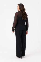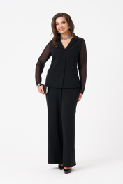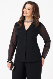 Это женский жакет из сочетания легкой костюмной ткани и сетки, выполненный в прилигающем силуэте. Модель отличается элегантным и утонченным дизайном, подходящим как для повседневных, так и для торжественных образов. Цвет жакета — насыщенный черный, что делает его универсальным и стильным элементом гардероба. Центральная бортовая застежка на обметанные петли и пуговицы, создающая аккуратный внешний вид. Передняя часть украшена двумя прорезными карманами с листочками, добавляющими функциональности и декоративности. По переду расположены две талиевые вытачки, подчеркивающие фигуру и создающие стройный силуэт. Спинка оформлена со средним швом и кокеткой из сетчатого материала, придающей образу легкость и оригинальность. Горловина обработана воротником-шаль, мягко обрамляющим плечи. Длинные рукава выполнены из сетчатого материала, гармонично сочетающегося с основной тканью жакета. Модель оснащена эластичной подкладкой для комфортного ношения. Этот жакет — изысканный и стильный элемент гардероба, который подчеркнет индивидуальность и добавит элегантности любому образу. 46 Жакет: Длина изделия - 64.5см, Длина рукава - 76.5см, Ширина по груди - 48.5см, Ширина по низу - 55см, Ширина рукава - 18см; 52 Жакет: Длина изделия - 65см, Длина рукава - 76.5см, Ширина по груди - 54.5см, Ширина по низу - 61см, Ширина рукава - 20см;