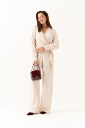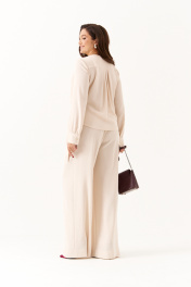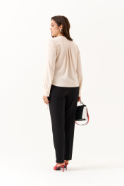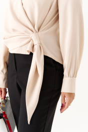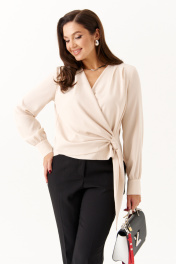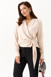 Женская блузка из струящейся ткани бежевого цвета, идеально подходящая для повседневной носки. Модель выполнена на запах, что придаёт ей элегантность и удобство. Передняя часть украшена складками в плечевом шве, а также дополнительными складками, образующимися за счёт передней детали, продеваемой через перемычку. Спинка имеет отрезную кокетку и небольшие складки для комфортной посадки. Горловина V-образная, подчёркивающая линию шеи. Рукава втачные, длинные. Низ рукава оформлен притачной манжетой с застёжкой на обмётанную петлю и пуговицу. Оригинальная и стильная блузка. 44 Блузка: Длина изделия по спинке - 60см, Длина рукава - 64см, Ширина плеча - 11.6см, Ширина по груди - 52см, Ширина по низу - 56см, Ширина рукава вверху - 17см, Ширина рукава внизу - 11.5см, Ширина спинки - 38см; 46 Блузка: Длина изделия по спинке - 60см, Длина рукава - 64см, Ширина плеча - 11.7см, Ширина по груди - 54см, Ширина по низу - 58см, Ширина рукава вверху - 17.5см, Ширина рукава внизу - 11.8см, Ширина спинки - 39см; 48 Блузка: Длина изделия по спинке - 60см, Длина рукава - 64см, Ширина плеча - 11.8см, Ширина по груди - 56см, Ширина по низу - 60см, Ширина рукава вверху - 18см, Ширина рукава внизу - 12см, Ширина спинки - 39.6см; 50 Блузка: Длина изделия по спинке - 61см, Длина рукава - 64см, Ширина плеча - 12см, Ширина по груди - 58см, Ширина по низу - 62см, Ширина рукава вверху - 19см, Ширина рукава внизу - 12.3см, Ширина спинки - 40.5см; 52 Блузка: Длина изделия по спинке - 62см, Длина рукава - 64см, Ширина плеча - 12см, Ширина по груди - 60см, Ширина по низу - 64см, Ширина рукава вверху - 20см, Ширина рукава внизу - 12.5см, Ширина спинки - 41.2см; 54 Блузка: Длина изделия по спинке - 63см, Длина рукава - 64см, Ширина плеча - 12.2см, Ширина по груди - 62см, Ширина по низу - 66см, Ширина рукава вверху - 20.5см, Ширина рукава внизу - 13см, Ширина спинки - 42см;