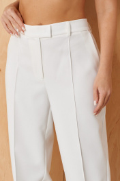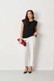 Женские брюки из поливискозной ткани представлены в классическом молочном цвете, который легко сочетается с любыми оттенками верхней одежды и аксессуарами. Модель выполнена с притачным поясом, дополненным шлёвками для возможности носить их с ремнём или без него, что обеспечивает универсальность и индивидуальный подход к стилю. Застежка расположена в среднем шве и включает в себя крючок и молнию, гарантируя удобство использования и аккуратную посадку по фигуре. Передняя часть брюк украшена застроченной стрелкой, добавляющей строгости и элегантности силуэту, а задняя часть оснащена двумя талиевыми вытачками для оптимального прилегания и комфорта. В боковом шве расположен карман с подкройным бочком, сочетающий практичность и лаконичный дизайн, а также по низу располагается потайная застежка молния. Универсальность модели позволяет носить её как в деловой обстановке, сочетая с блузками и пиджаками, так и в повседневных образах с футболками, свитерами или свободными топами. Идеальный вариант для тех, кто ценит комфорт, стиль и функциональность в одной вещи. 56 Брюки: Высота посадки - 32.5см, Длина брюк без пояса - 95см, Длина по шаговому шву - 70см, Ширина брючин сверху - 76см, Обхват брюк по низу - 44см, Ширина по бедрам - 67см, Ширина по талии - 51.5см;
