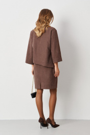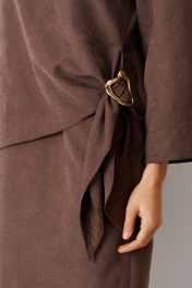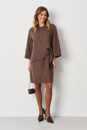 Элегантное женское платье из смесовой ткани с эффектом замши, которое сочетает в себе стиль и комфорт. Модель выполнена с имитацией блузки, что придает ей уникальный и современный вид. В боковом шве предусмотрен разрез, который добавляет нотку игривости, а декоративная металлическая деталь в боковой части подчеркивает изысканность дизайна. Нижняя часть платья оформлена средним швом и небольшим разрезом, что обеспечивает свободу движений. Расширенная горловина придает образу легкость и женственность. Длинные втачные рукава длиной 3/4 создают стильный силуэт, а длина платья чуть выше колена добавляет кокетливости. Платье представлено в красивом цвете мокко, который отлично вписывается в любой гардероб и подходит для различных случаев, от повседневных до более нарядных мероприятий. Это платье станет отличным выбором для тех, кто ценит комфорт и стиль в одном изделии. 46 Платье: Длина изделия - 93см, Длина рукава - 46см, Ширина по бедрам - 54см, Ширина по груди - 54см, Ширина по талии - 48см, Ширина рукава вверху - 20.5см, Ширина рукава внизу - 20см; 50 Платье: Длина изделия - 94см, Длина рукава - 46см, Ширина по бедрам - 58см, Ширина по груди - 58см, Ширина по талии - 52см, Ширина рукава вверху - 22см, Ширина рукава внизу - 21см;
