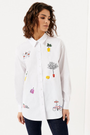 Блузка женская с принтом на пуговицах из хлопка Панда 139840w белый