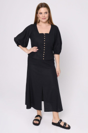 Юбка и блуза на каждый день из льна с принтом в полоску Панда 144310w черный