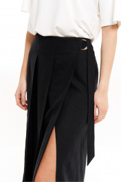 Элегантная женская юбка классического прямого кроя, выполненная из ткани с высоким содержанием льна и вискозы, идеально подходит для повседневной носки. Благодаря своим качественным материалам, юбка обеспечивает комфорт в летние и весенние дни, сочетая стиль и практичность. Юбка свободного кроя расширяется к низу, что придает ей утончённый вид, а обработка верхнего среза обтачкой и боковая регулировка пояса добавляют удобства и надежности. Особенностью модели является стильный запах с двумя складками, который добавляет изысканности и делает юбку идеальной для деловых встреч и офисных будней. Заднее полотнище юбки украшено двумя талиевыми вытачками, которые подчеркивают форму и создают элегантный силуэт. Нижний срез юбки обработан кружевом, что придает ей нарядный и утончённый вид, идеально подходящий для вечерних выходов. Черный оттенок юбки делает её универсальной, она прекрасно сочетается как с базовыми, так и с более яркими элементами гардероба. Эта юбка – отличный выбор для женщин, которые ценят комфорт и стиль в повседневной жизни, и станет незаменимым элементом как для офисных, так и для более формальных мероприятий. С её помощью вы легко сможете создать образ для работы, прогулок по городу или даже для вечерних встреч. Юбка длины миди идеально подходит для любого сезона, будь то лето или весна, и станет отличным дополнением к любому женскому гардеробу, привнося в него нотки элегантности и женственности. 44 Юбка: Длина изделия - 89см, Ширина по бедрам - 49см, Ширина по талии - 35,5см; 46 Юбка: Длина изделия - 89см, Ширина по бедрам - 51см, Ширина по талии - 37,5см; 48 Юбка: Длина изделия - 89см, Ширина по бедрам - 53см, Ширина по талии - 39,5см; 50 Юбка: Длина изделия - 89см, Ширина по бедрам - 55см, Ширина по талии - 42,5см; 52 Юбка: Длина изделия - 89см, Ширина по бедрам - 57см, Ширина по талии - 45,5см; 54 Юбка: Длина изделия - 89см, Ширина по бедрам - 59см, Ширина по талии - 47,5см;