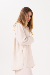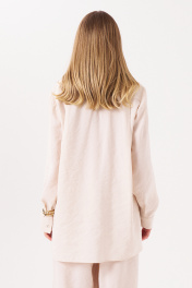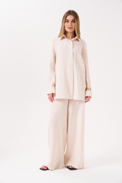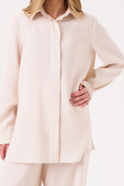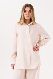 Женская классическая блузка из смесовой ткани — это универсальный элемент гардероба, который идеально подходит для создания как повседневного, так и офисного образа. Блузка выполнена в классическом стиле с прямым силуэтом, обеспечивающим свободный комфорт в течение всего дня. Элегантный рубашечный воротник с отрезной стойкой придаёт модели деловой акцент, а застёжка на пуговицы и аккуратные обметанные петли подчеркивают утончённость изделия. Спинка с кокеткой и двумя мягкими складками добавляет лёгкости и свободы движения, а боковые разрезы обеспечивают дополнительный комфорт. Длинные втачные рукава завершены манжетами на пуговицах, что делает модель нарядной и завершённой. Блузка представлена в стильном бежевом цвете, который легко сочетается с другими базовыми вещами гардероба. Она отлично подойдёт для весеннего и летнего сезона, позволяя чувствовать себя уверенно в любой ситуации — будь то деловая встреча, праздничное мероприятие или повседневная прогулка. Благодаря своему универсальному дизайну, блузка может стать как основой классического офисного комплекта, так и нарядным вариантом для вечернего выхода. Актуальна для женщин, ценящих комфорт, стиль и функциональность. Эта женская блузка — базовое решение для тех, кто хочет выглядеть стильно каждый день. 48 Блузка: Длина изделия - 77см, Длина рукава - 61см, Обхват шеи - 45.5см, Ширина плеча - 13см, Ширина по груди - 56см, Ширина по низу - 62см, Ширина рукава - 19.5см; 50 Блузка: Длина изделия - 77см, Длина рукава - 61см, Обхват шеи - 46см, Ширина плеча - 13см, Ширина по груди - 58см, Ширина по низу - 64см, Ширина рукава - 20см;
