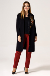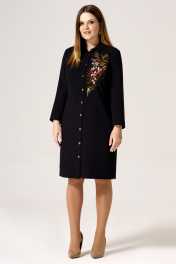 Эффектное, стильное платье. Декарировано дизайнерской вышивкой по переду, помогает создать законченный, многогранный, но лаконичный образ. Хороший вариант, как для будней, так и для выхода в свет. Платье прямого силуэта, воротник отложной, с центральной застежкой на пуговицы, в боковых швах обработаны боковые карманы, низ платья в боковых швах, оформено разрезами. Рукава втачные, длина 7/8, заканчиваются шлицами на петли пуговицы. 56 Платье: Длина рукава - 53см, Длина спинки - 96.5см, Длина до талии - 41.2см, Обхват шеи - 46.6см, Ширина плеча - 12.2см, Ширина по бедрам - 61см, Ширина по груди - 60см, Ширина рукава - 20.7см;