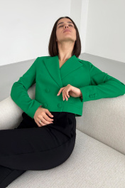 Элегантный короткий жакет из трикотажа с английским воротником Панда 54430w зеленый