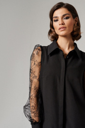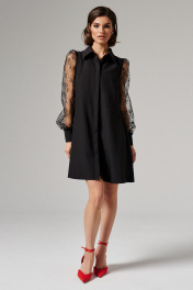 Платье мини с рукавами-летучками иоротом рубашечного типа Панда 69683w черный